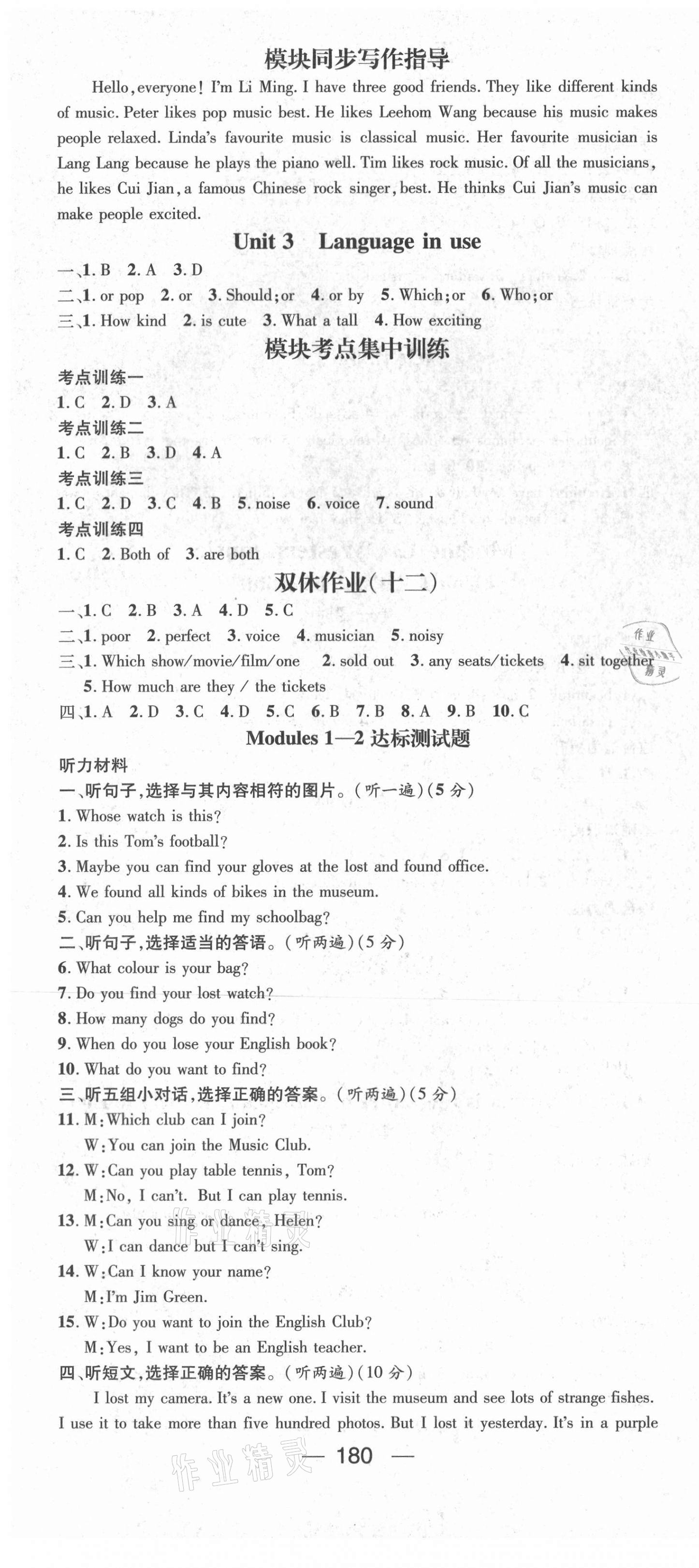 注:目前有些书本章节名称可能整理的还不是很完善,但都是按照顺序排列的,请同学们按照顺序仔细查找。练习册 2021年名师测控七年级英语下册外研版Ⅱ 答案主要是用来给同学们做完题方便对答案用的,请勿直接抄袭。