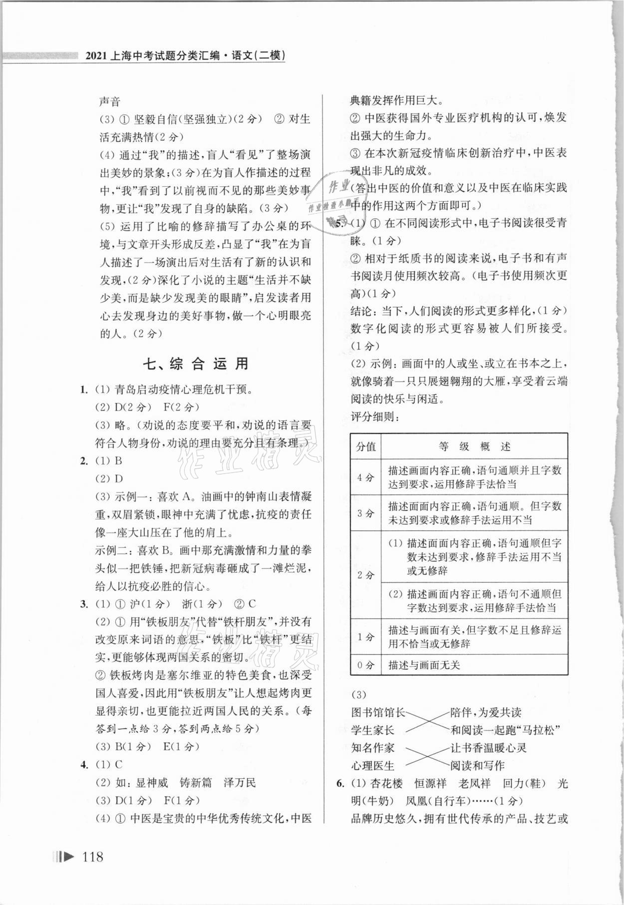 注:目前有些书本章节名称可能整理的还不是很完善,但都是按照顺序排列的,请同学们按照顺序仔细查找。练习册 2021年上海中考试题分类汇编语文二模 答案主要是用来给同学们做完题方便对答案用的,请勿直接抄袭。