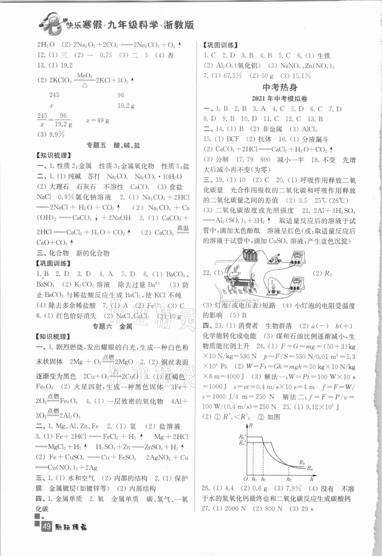 2021年快乐寒假初中科学九年级浙教版延边人民出版社