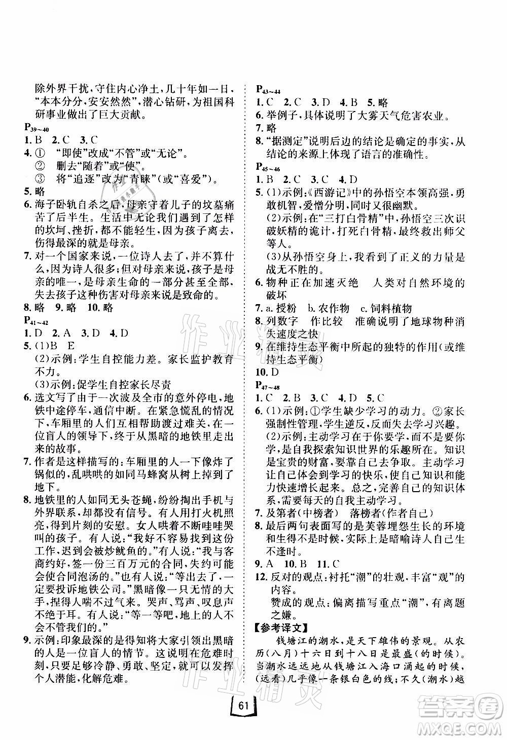 注:目前有些书本章节名称可能整理的还不是很完善,但都是按照顺序排列的,请同学们按照顺序仔细查找。练习册 2021年寒假天地八年级语文河北少年儿童出版社 答案主要是用来给同学们做完题方便对答案用的,请勿直接抄袭。