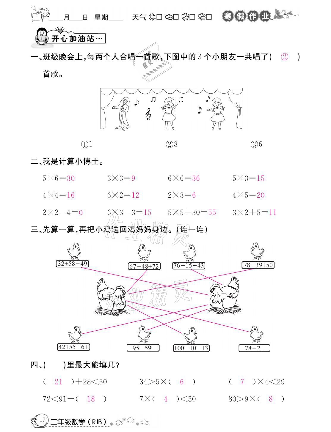 注:目前有些书本章节名称可能整理的还不是很完善,但都是按照顺序排列的,请同学们按照顺序仔细查找。练习册 2021年快乐假期寒假作业二年级数学人教版延边教育出版社 答案主要是用来给同学们做完题方便对答案用的,请勿直接抄袭。