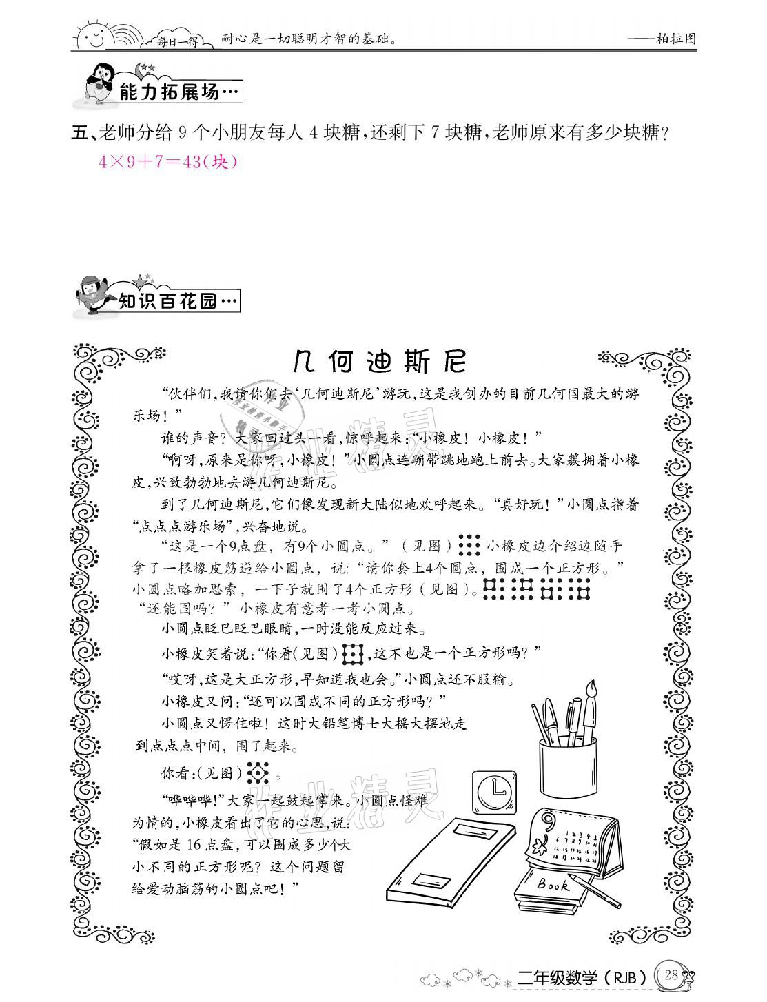 注:目前有些书本章节名称可能整理的还不是很完善,但都是按照顺序排列的,请同学们按照顺序仔细查找。练习册 2021年快乐假期寒假作业二年级数学人教版延边教育出版社 答案主要是用来给同学们做完题方便对答案用的,请勿直接抄袭。