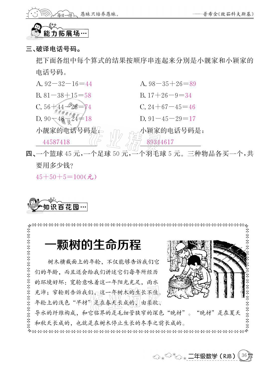 注:目前有些书本章节名称可能整理的还不是很完善,但都是按照顺序排列的,请同学们按照顺序仔细查找。练习册 2021年快乐假期寒假作业二年级数学人教版延边教育出版社 答案主要是用来给同学们做完题方便对答案用的,请勿直接抄袭。