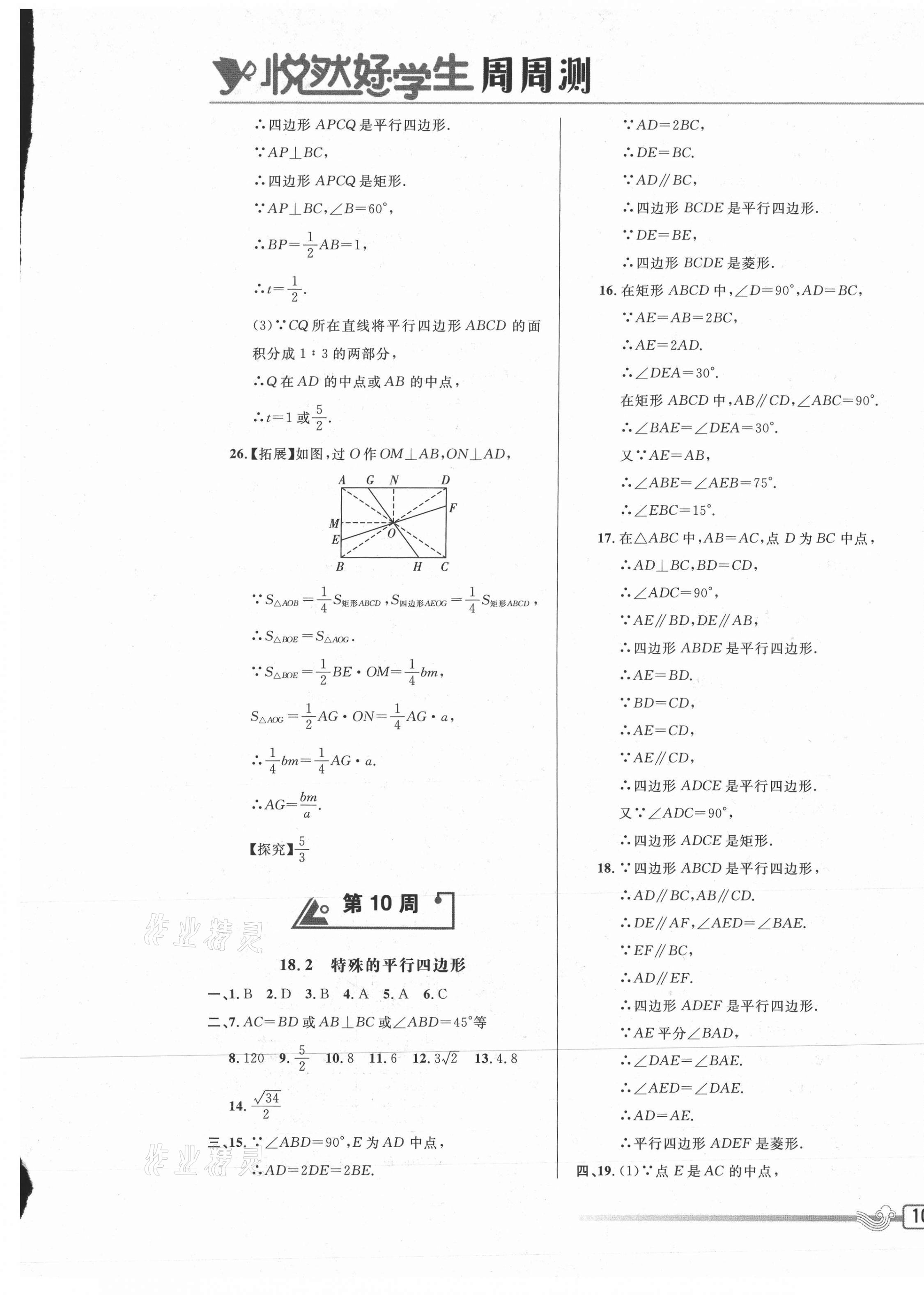 注:目前有些书本章节名称可能整理的还不是很完善,但都是按照顺序排列的,请同学们按照顺序仔细查找。练习册 2021年悦然好学生周周测八年级数学下册人教版 答案主要是用来给同学们做完题方便对答案用的,请勿直接抄袭。