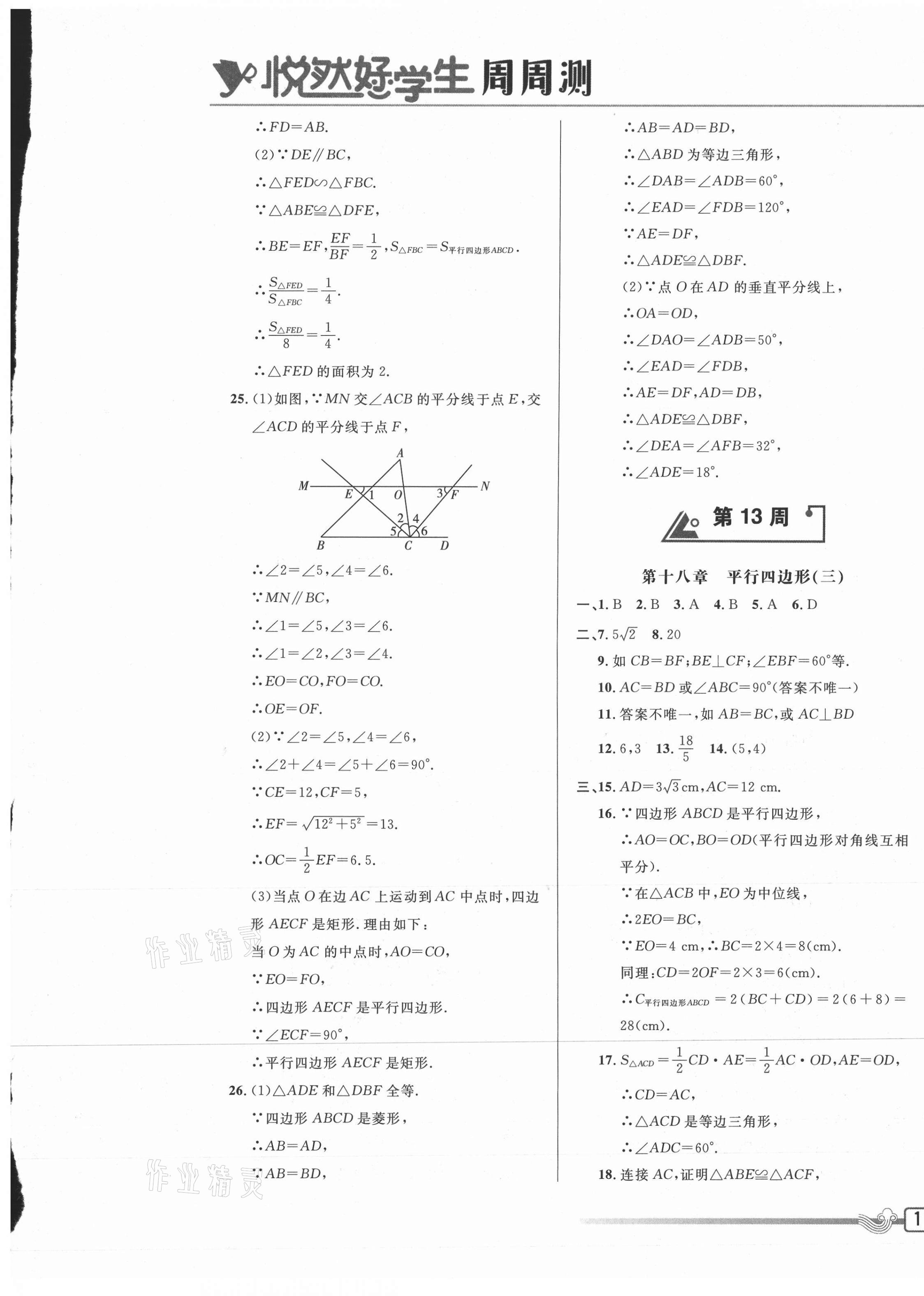 注:目前有些书本章节名称可能整理的还不是很完善,但都是按照顺序排列的,请同学们按照顺序仔细查找。练习册 2021年悦然好学生周周测八年级数学下册人教版 答案主要是用来给同学们做完题方便对答案用的,请勿直接抄袭。