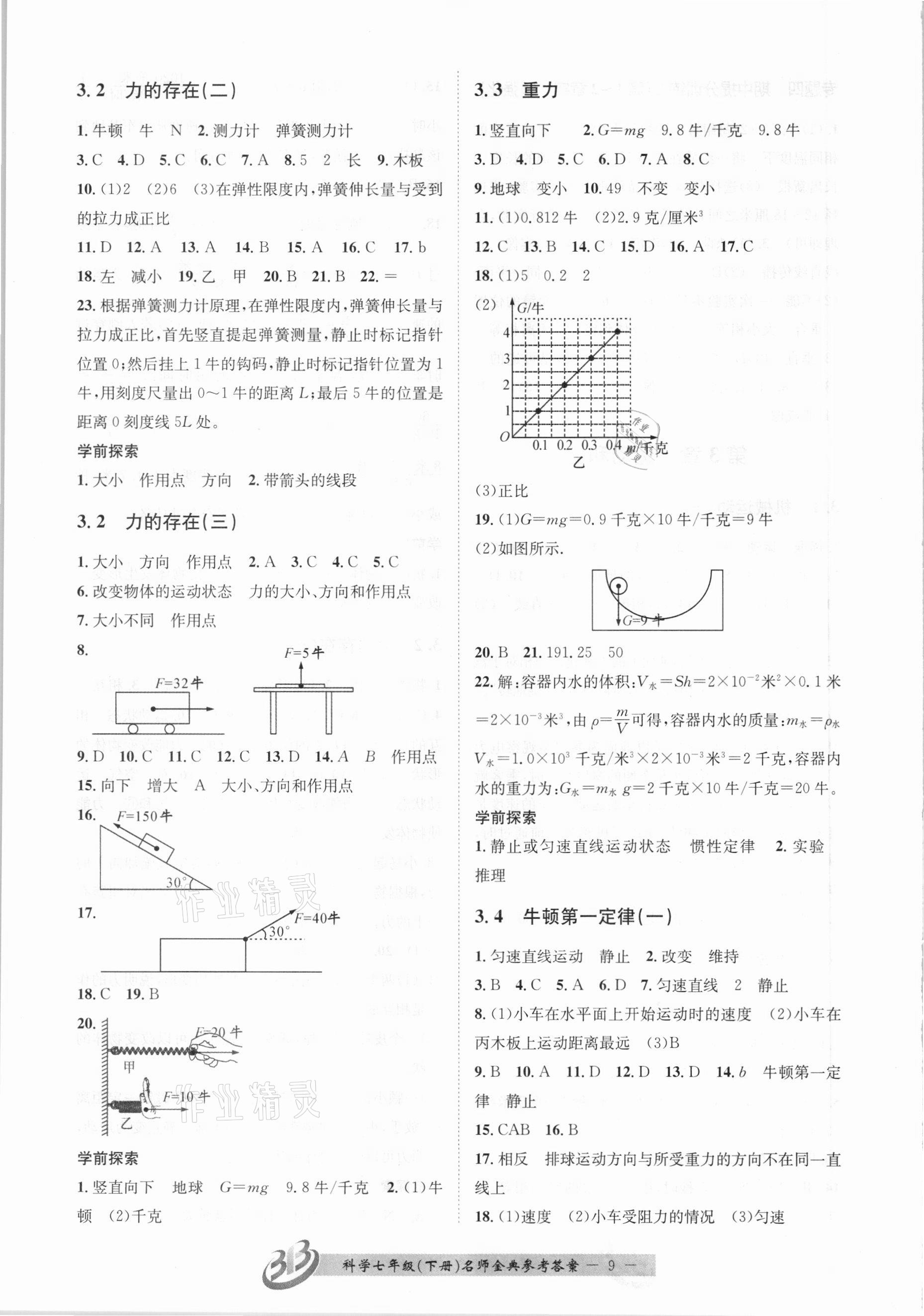 注:目前有些书本章节名称可能整理的还不是很完善,但都是按照顺序排列的,请同学们按照顺序仔细查找。练习册 2021年名师金典BFB初中课时优化七年级科学下册浙教版杭州专版 答案主要是用来给同学们做完题方便对答案用的,请勿直接抄袭。