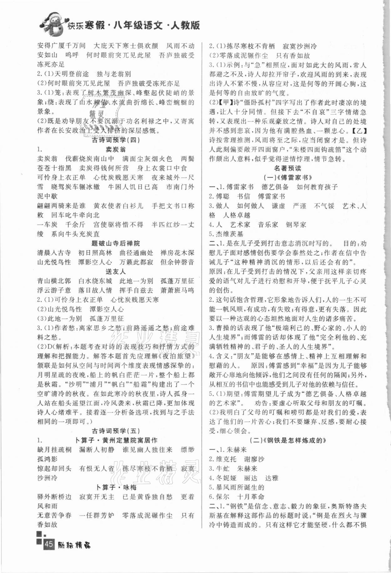 2021年快乐寒假八年级语文部编版延边人民出版社