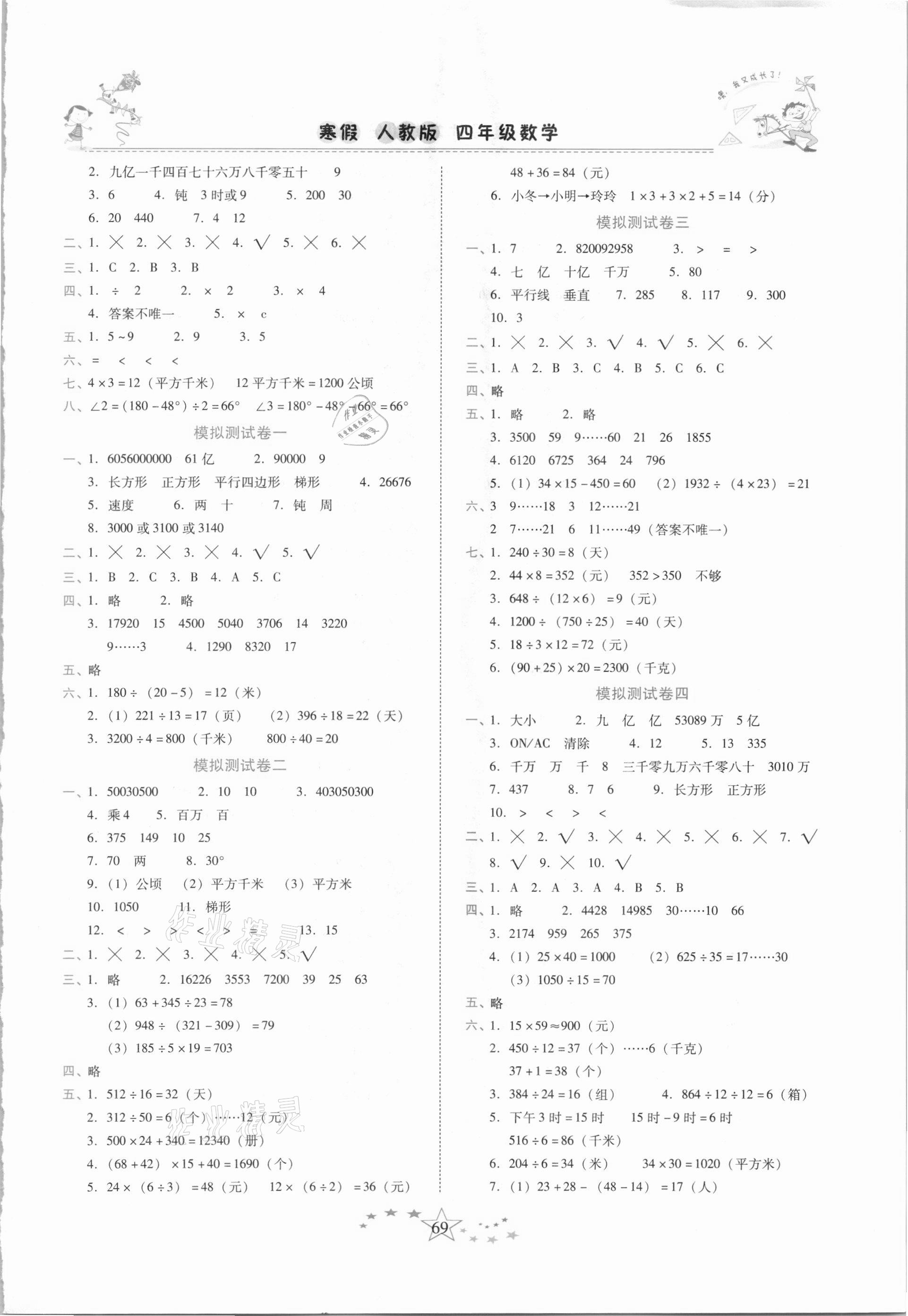 2021年复习计划100分快乐寒假四年级数学人教版云南专版