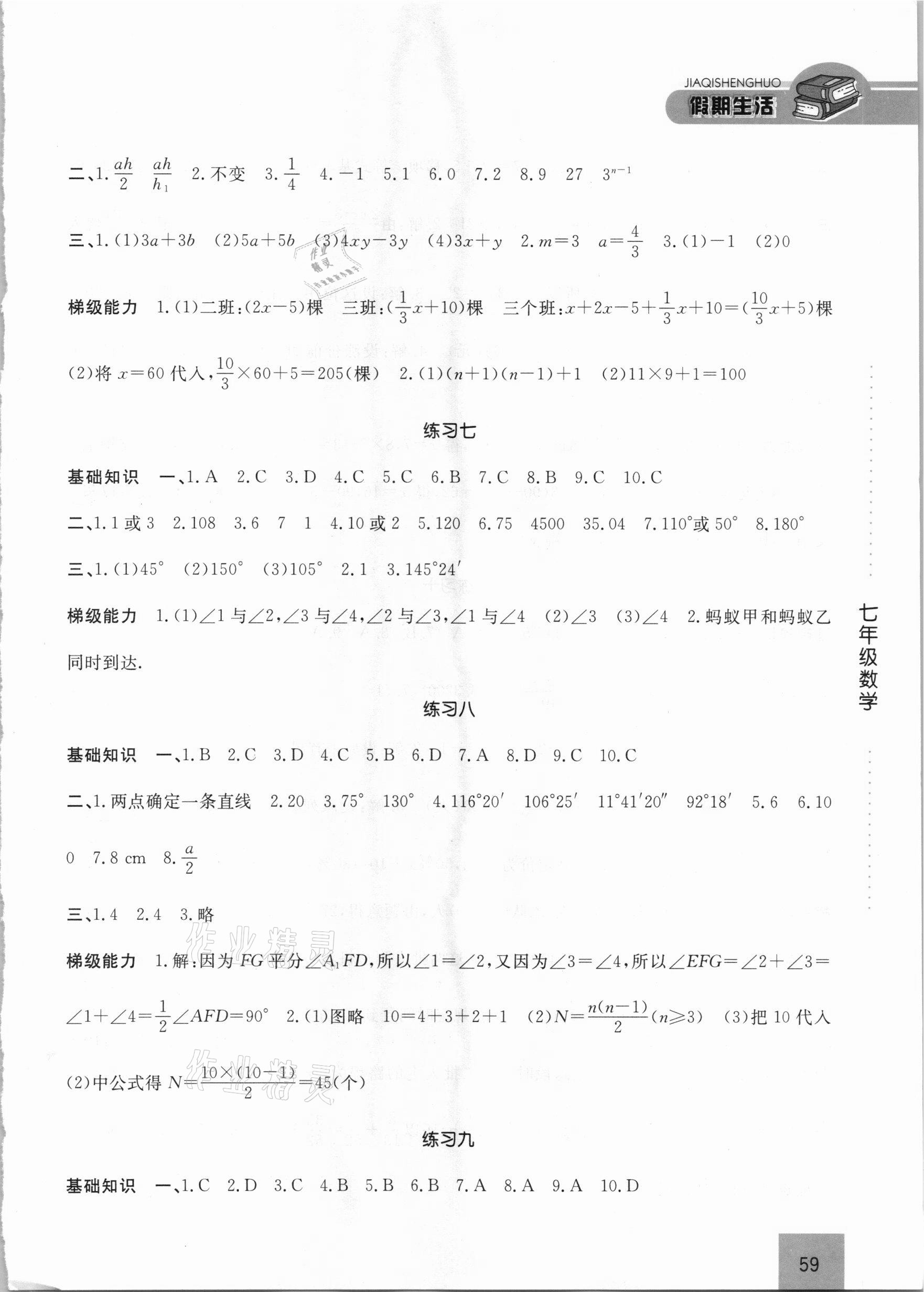 2021年假期生活七年级数学北师大版方圆电子音像出版社