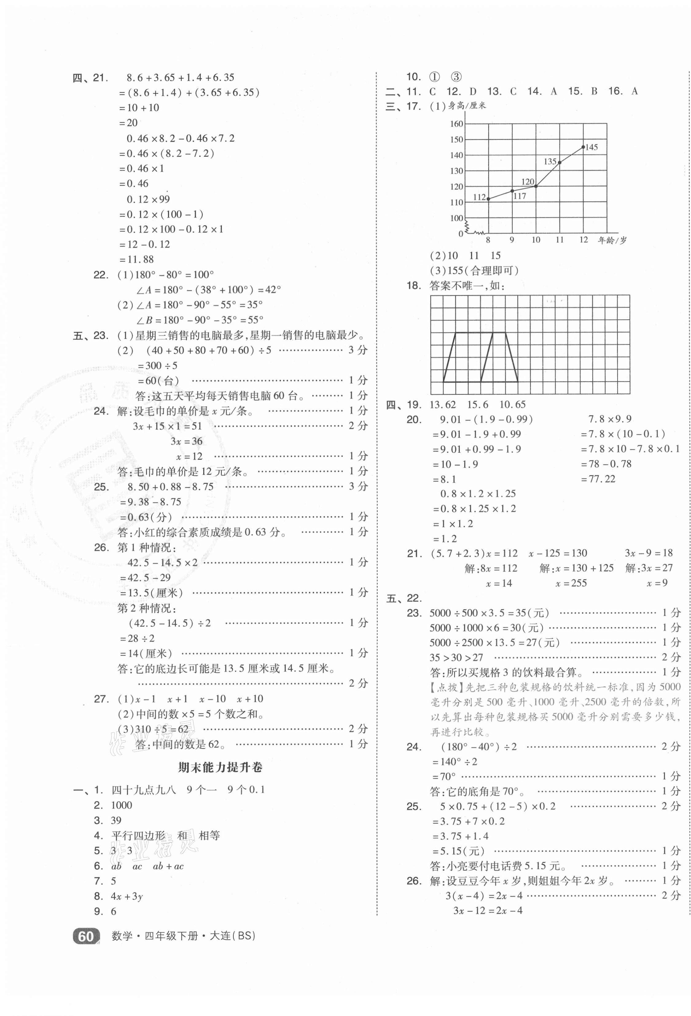 2021年大连市小学全程同步学习高效测评卷四年级数学下册北师大版