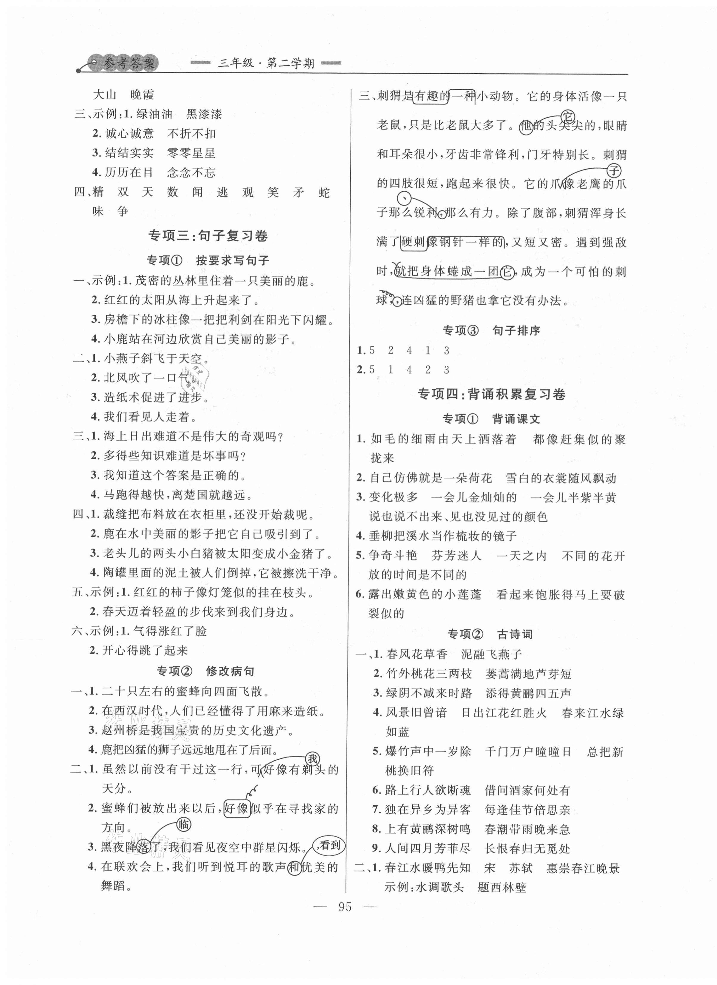 注:目前有些书本章节名称可能整理的还不是很完善,但都是按照顺序排列的,请同学们按照顺序仔细查找。练习册 2021年大连金牌期末模拟试卷三年级语文第二学期人教版 答案主要是用来给同学们做完题方便对答案用的,请勿直接抄袭。