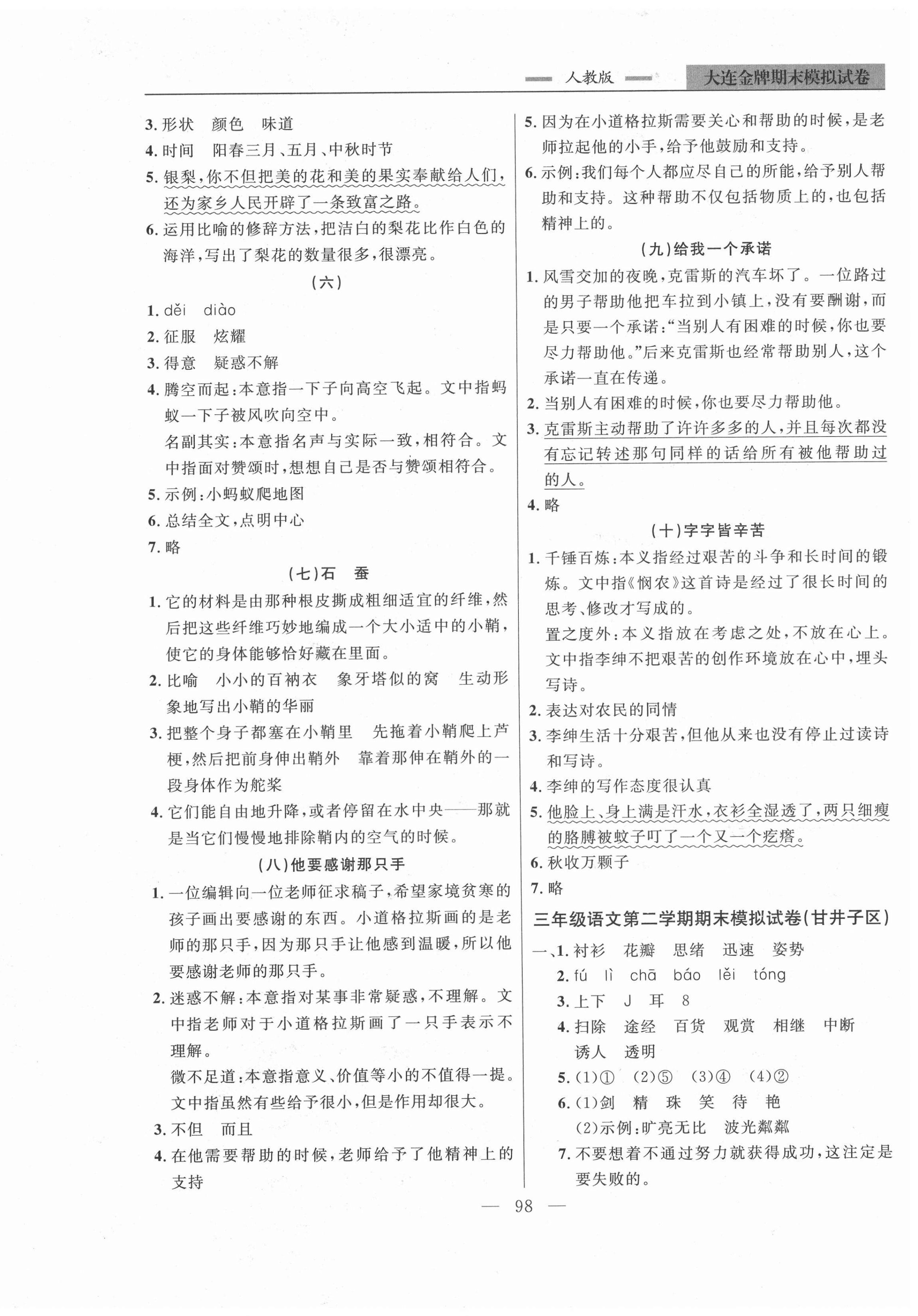 2021年大连金牌期末模拟试卷三年级语文第二学期人教版