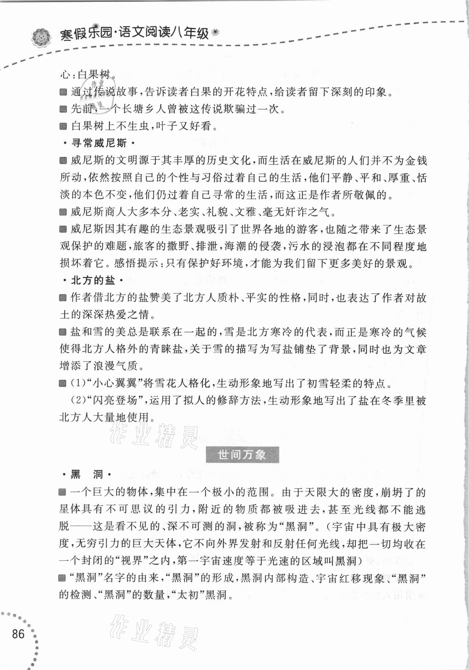 2021年寒假乐园八年级语文阅读辽宁师范大学出版社