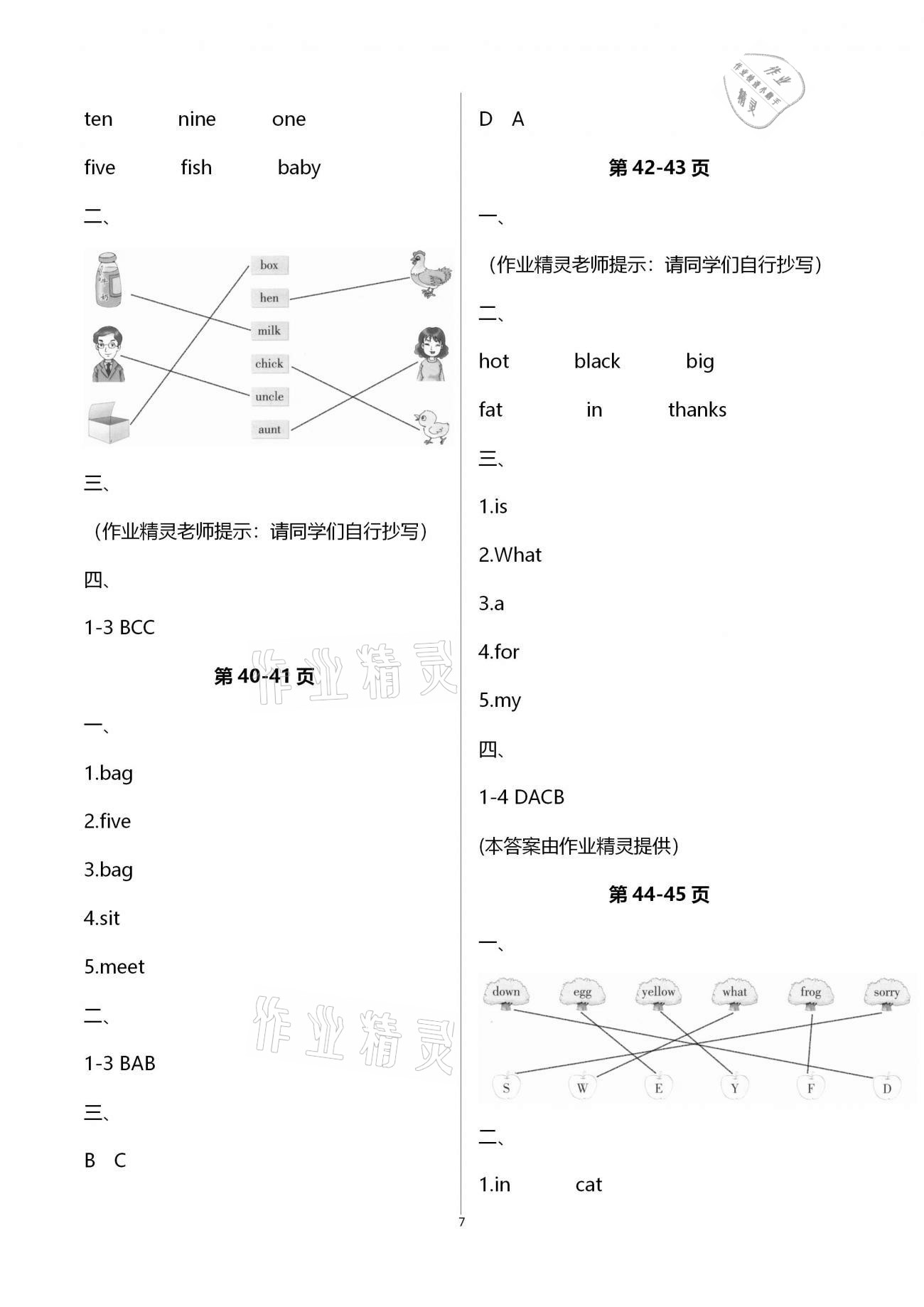 注:目前有些书本章节名称可能整理的还不是很完善,但都是按照顺序排列的,请同学们按照顺序仔细查找。练习册 2021年寒假作业三年级英语科普版海燕出版社 答案主要是用来给同学们做完题方便对答案用的,请勿直接抄袭。