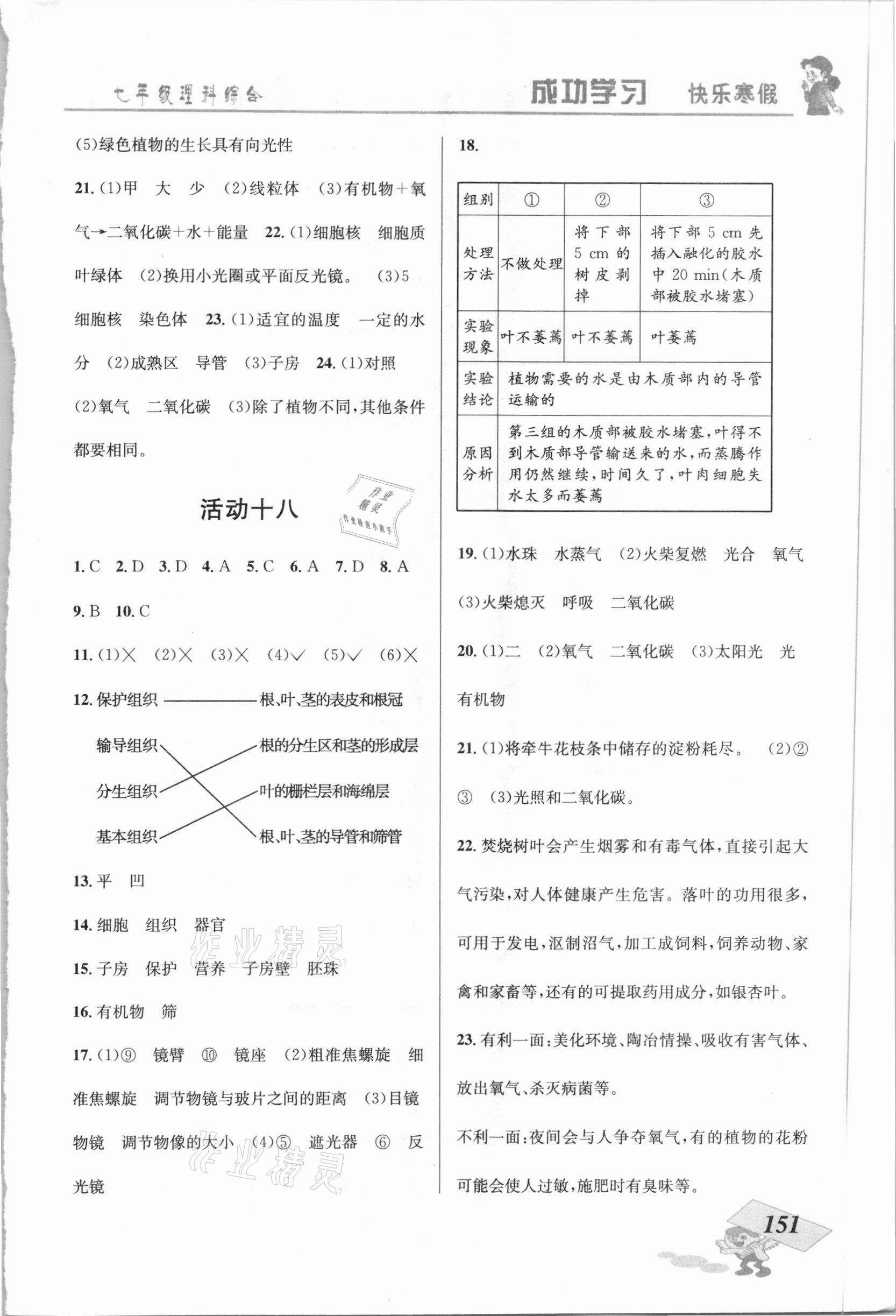 2021年创新成功学习快乐寒假七年级理科综合云南科技出版社