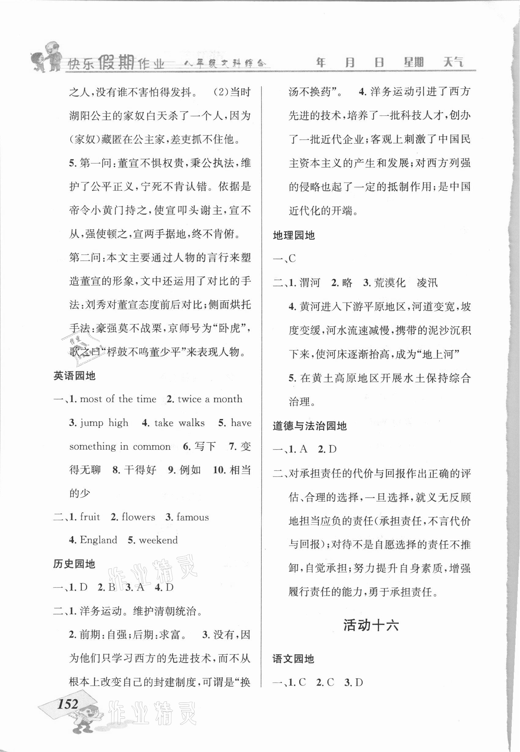 注:目前有些书本章节名称可能整理的还不是很完善,但都是按照顺序排列的,请同学们按照顺序仔细查找。练习册 2021年创新成功学习快乐寒假八年级文科综合云南科技出版社 答案主要是用来给同学们做完题方便对答案用的,请勿直接抄袭。