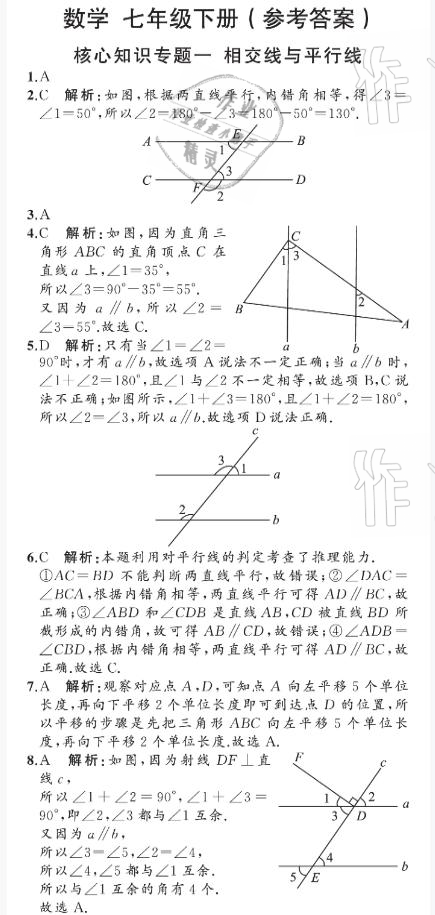 注:目前有些书本章节名称可能整理的还不是很完善,但都是按照顺序排列的,请同学们按照顺序仔细查找。练习册 2021年阳光课堂质监天津单元检测卷七年级数学下册人教版 答案主要是用来给同学们做完题方便对答案用的,请勿直接抄袭。