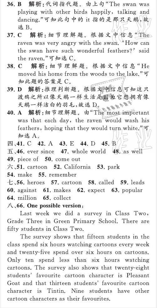 注:目前有些书本章节名称可能整理的还不是很完善,但都是按照顺序排列的,请同学们按照顺序仔细查找。练习册 2021年英语教材补充与练习质监天津单元检测卷八年级英语下册外研版 答案主要是用来给同学们做完题方便对答案用的,请勿直接抄袭。