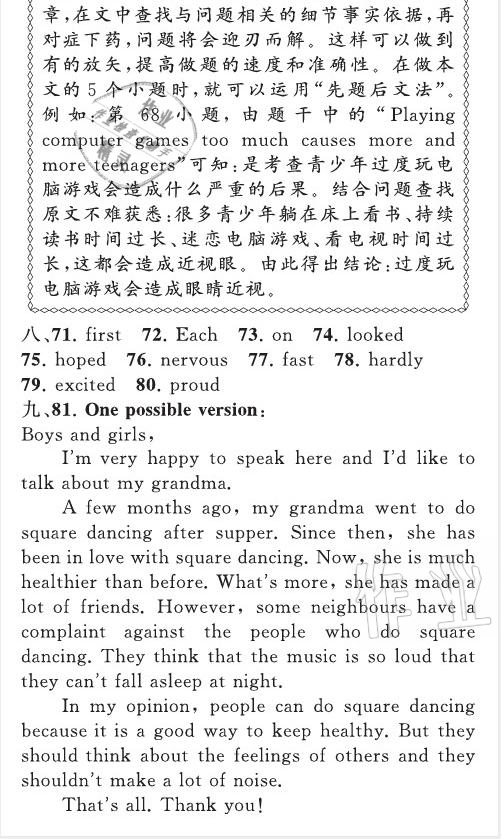 注:目前有些书本章节名称可能整理的还不是很完善,但都是按照顺序排列的,请同学们按照顺序仔细查找。练习册 2021年英语教材补充与练习质监天津单元检测卷八年级英语下册外研版 答案主要是用来给同学们做完题方便对答案用的,请勿直接抄袭。