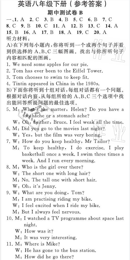 注:目前有些书本章节名称可能整理的还不是很完善,但都是按照顺序排列的,请同学们按照顺序仔细查找。练习册 2021年英语教材补充与练习质监天津单元检测卷八年级英语下册外研版 答案主要是用来给同学们做完题方便对答案用的,请勿直接抄袭。