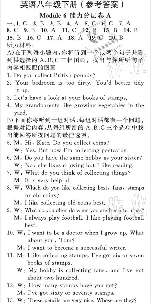 注:目前有些书本章节名称可能整理的还不是很完善,但都是按照顺序排列的,请同学们按照顺序仔细查找。练习册 2021年英语教材补充与练习质监天津单元检测卷八年级英语下册外研版 答案主要是用来给同学们做完题方便对答案用的,请勿直接抄袭。