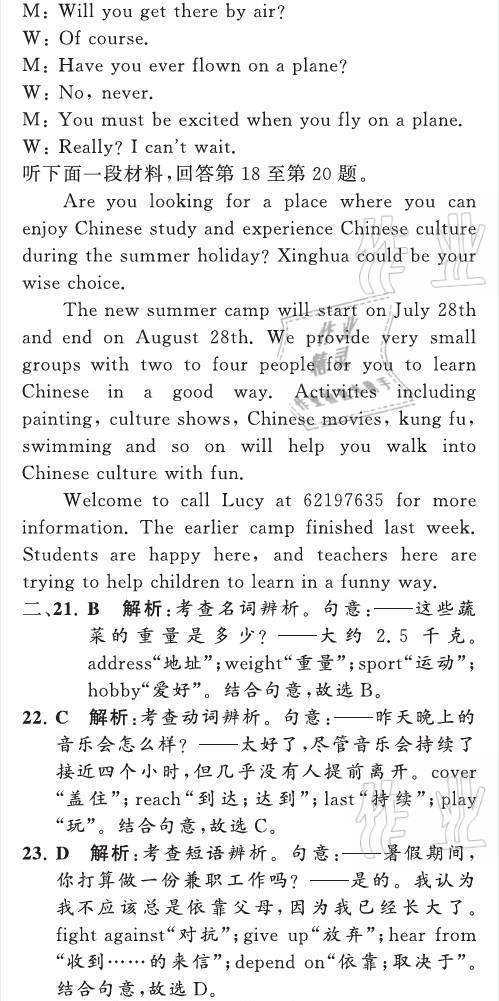注:目前有些书本章节名称可能整理的还不是很完善,但都是按照顺序排列的,请同学们按照顺序仔细查找。练习册 2021年英语教材补充与练习质监天津单元检测卷八年级英语下册外研版 答案主要是用来给同学们做完题方便对答案用的,请勿直接抄袭。