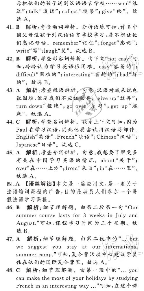 注:目前有些书本章节名称可能整理的还不是很完善,但都是按照顺序排列的,请同学们按照顺序仔细查找。练习册 2021年英语教材补充与练习质监天津单元检测卷八年级英语下册外研版 答案主要是用来给同学们做完题方便对答案用的,请勿直接抄袭。