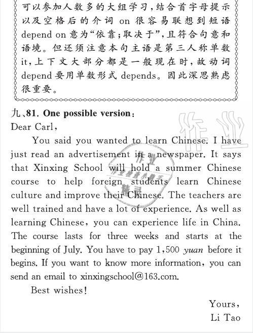 注:目前有些书本章节名称可能整理的还不是很完善,但都是按照顺序排列的,请同学们按照顺序仔细查找。练习册 2021年英语教材补充与练习质监天津单元检测卷八年级英语下册外研版 答案主要是用来给同学们做完题方便对答案用的,请勿直接抄袭。