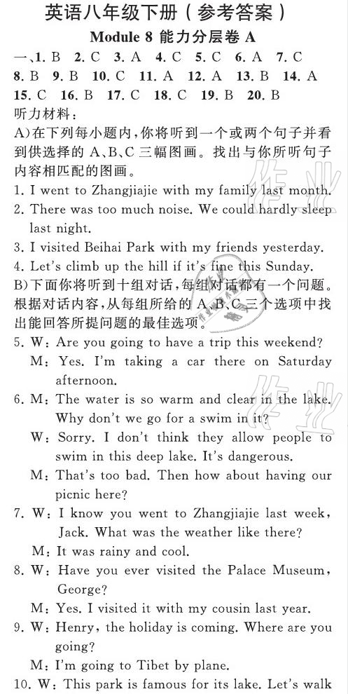 注:目前有些书本章节名称可能整理的还不是很完善,但都是按照顺序排列的,请同学们按照顺序仔细查找。练习册 2021年英语教材补充与练习质监天津单元检测卷八年级英语下册外研版 答案主要是用来给同学们做完题方便对答案用的,请勿直接抄袭。