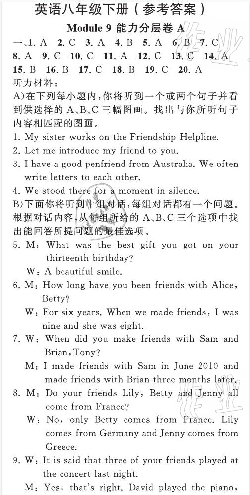 注:目前有些书本章节名称可能整理的还不是很完善,但都是按照顺序排列的,请同学们按照顺序仔细查找。练习册 2021年英语教材补充与练习质监天津单元检测卷八年级英语下册外研版 答案主要是用来给同学们做完题方便对答案用的,请勿直接抄袭。