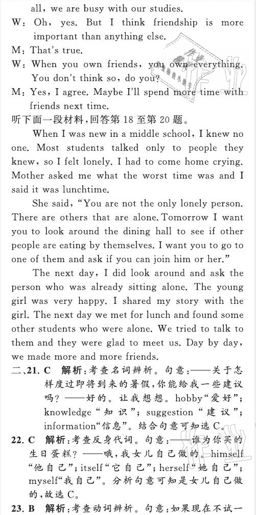 注:目前有些书本章节名称可能整理的还不是很完善,但都是按照顺序排列的,请同学们按照顺序仔细查找。练习册 2021年英语教材补充与练习质监天津单元检测卷八年级英语下册外研版 答案主要是用来给同学们做完题方便对答案用的,请勿直接抄袭。