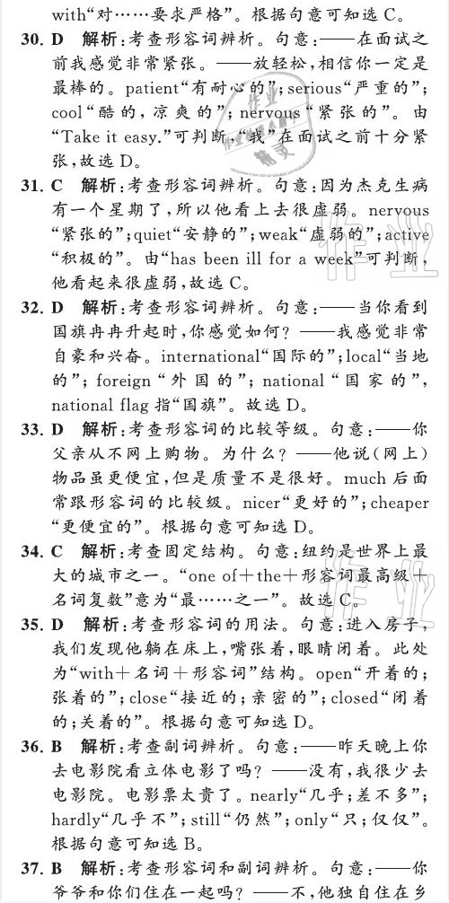 注:目前有些书本章节名称可能整理的还不是很完善,但都是按照顺序排列的,请同学们按照顺序仔细查找。练习册 2021年英语教材补充与练习质监天津单元检测卷八年级英语下册外研版 答案主要是用来给同学们做完题方便对答案用的,请勿直接抄袭。