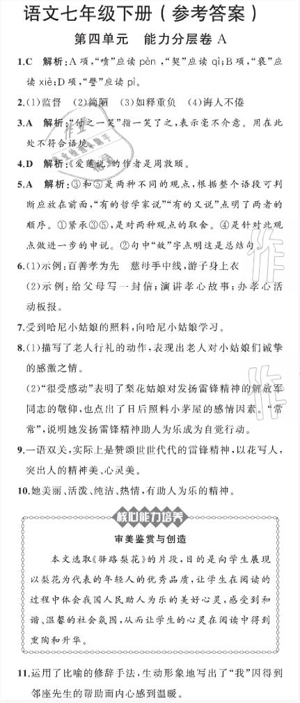 注:目前有些书本章节名称可能整理的还不是很完善,但都是按照顺序排列的,请同学们按照顺序仔细查找。练习册 2021年阳光课堂质监天津单元检测卷七年级语文下册人教版 答案主要是用来给同学们做完题方便对答案用的,请勿直接抄袭。