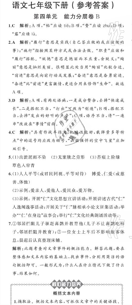 注:目前有些书本章节名称可能整理的还不是很完善,但都是按照顺序排列的,请同学们按照顺序仔细查找。练习册 2021年阳光课堂质监天津单元检测卷七年级语文下册人教版 答案主要是用来给同学们做完题方便对答案用的,请勿直接抄袭。