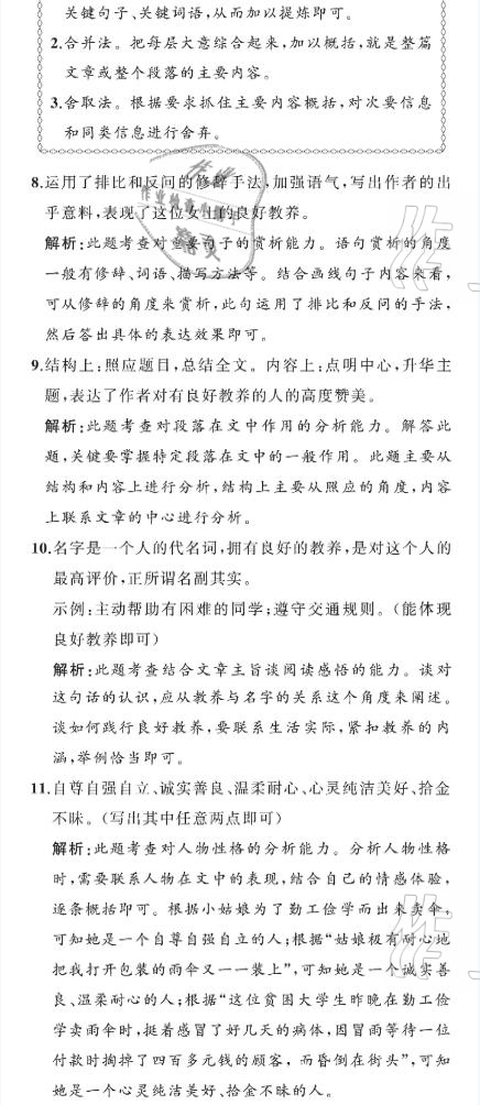 注:目前有些书本章节名称可能整理的还不是很完善,但都是按照顺序排列的,请同学们按照顺序仔细查找。练习册 2021年阳光课堂质监天津单元检测卷七年级语文下册人教版 答案主要是用来给同学们做完题方便对答案用的,请勿直接抄袭。