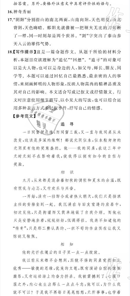 注:目前有些书本章节名称可能整理的还不是很完善,但都是按照顺序排列的,请同学们按照顺序仔细查找。练习册 2021年阳光课堂质监天津单元检测卷七年级语文下册人教版 答案主要是用来给同学们做完题方便对答案用的,请勿直接抄袭。