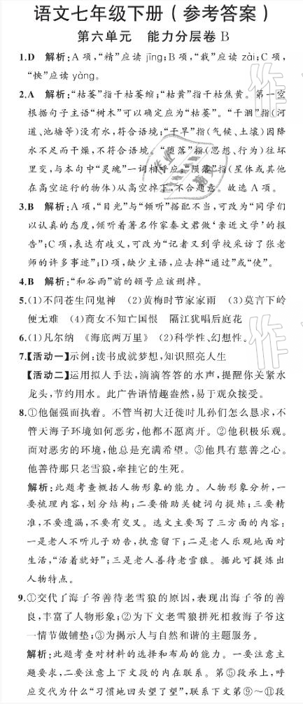 注:目前有些书本章节名称可能整理的还不是很完善,但都是按照顺序排列的,请同学们按照顺序仔细查找。练习册 2021年阳光课堂质监天津单元检测卷七年级语文下册人教版 答案主要是用来给同学们做完题方便对答案用的,请勿直接抄袭。