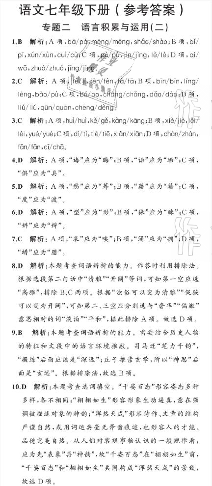 注:目前有些书本章节名称可能整理的还不是很完善,但都是按照顺序排列的,请同学们按照顺序仔细查找。练习册 2021年阳光课堂质监天津单元检测卷七年级语文下册人教版 答案主要是用来给同学们做完题方便对答案用的,请勿直接抄袭。