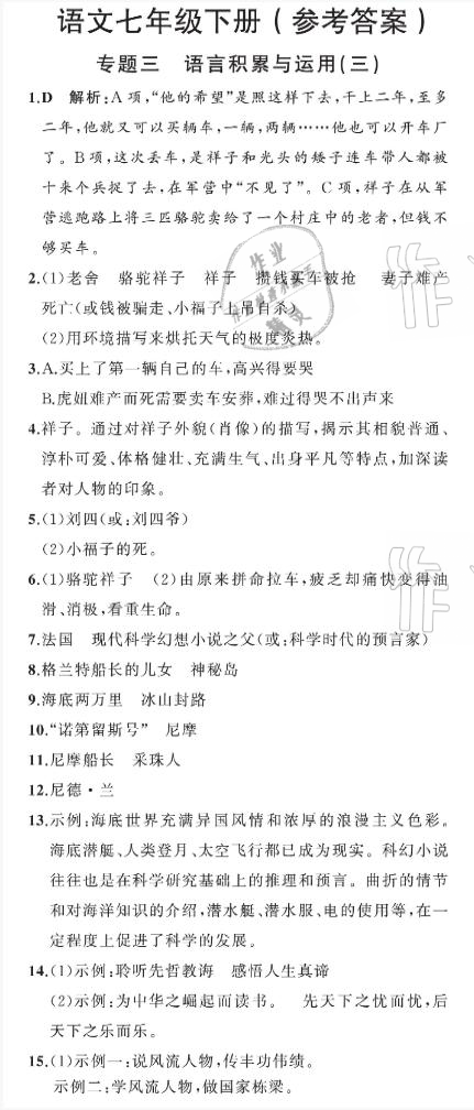 注:目前有些书本章节名称可能整理的还不是很完善,但都是按照顺序排列的,请同学们按照顺序仔细查找。练习册 2021年阳光课堂质监天津单元检测卷七年级语文下册人教版 答案主要是用来给同学们做完题方便对答案用的,请勿直接抄袭。