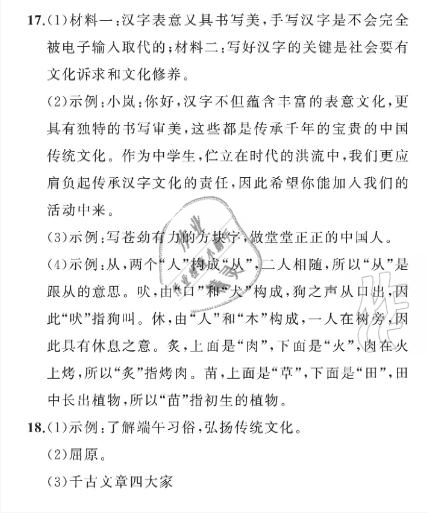 注:目前有些书本章节名称可能整理的还不是很完善,但都是按照顺序排列的,请同学们按照顺序仔细查找。练习册 2021年阳光课堂质监天津单元检测卷七年级语文下册人教版 答案主要是用来给同学们做完题方便对答案用的,请勿直接抄袭。