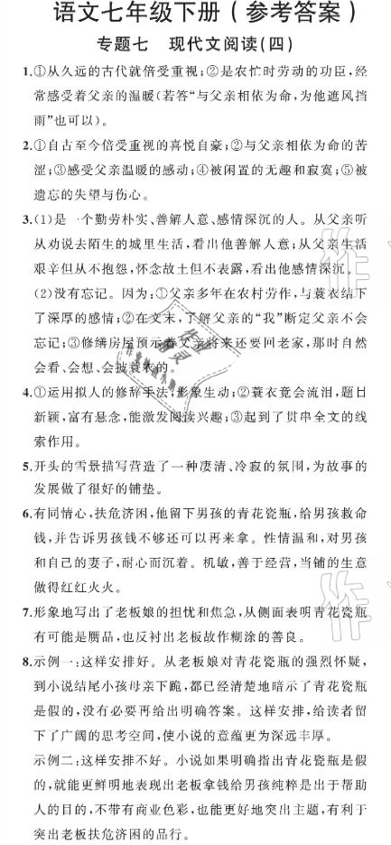 2021年阳光课堂质监天津单元检测卷七年级语文下册人教版