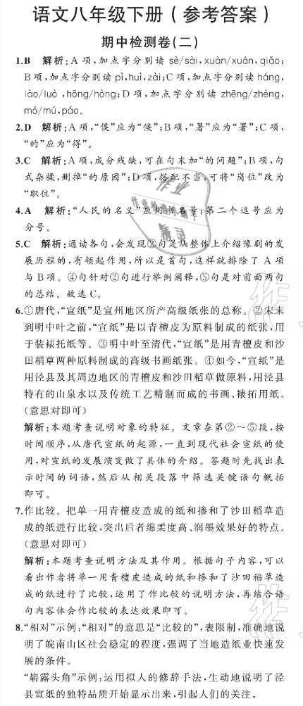 注:目前有些书本章节名称可能整理的还不是很完善,但都是按照顺序排列的,请同学们按照顺序仔细查找。练习册 2021年阳光课堂质监天津单元检测卷八年级语文下册人教版 答案主要是用来给同学们做完题方便对答案用的,请勿直接抄袭。