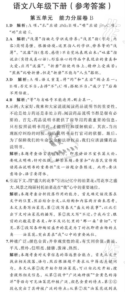 注:目前有些书本章节名称可能整理的还不是很完善,但都是按照顺序排列的,请同学们按照顺序仔细查找。练习册 2021年阳光课堂质监天津单元检测卷八年级语文下册人教版 答案主要是用来给同学们做完题方便对答案用的,请勿直接抄袭。