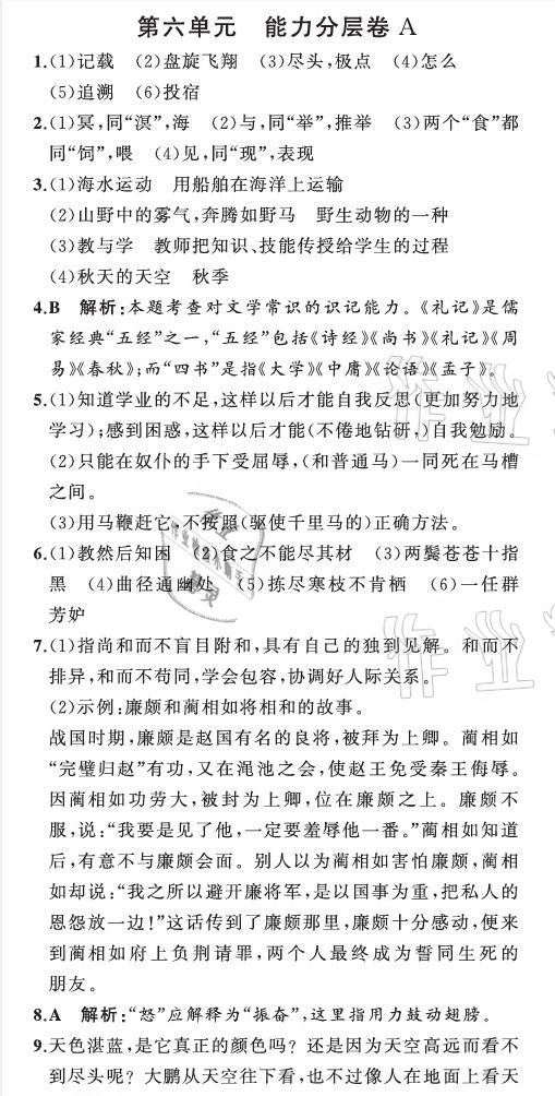 注:目前有些书本章节名称可能整理的还不是很完善,但都是按照顺序排列的,请同学们按照顺序仔细查找。练习册 2021年阳光课堂质监天津单元检测卷八年级语文下册人教版 答案主要是用来给同学们做完题方便对答案用的,请勿直接抄袭。
