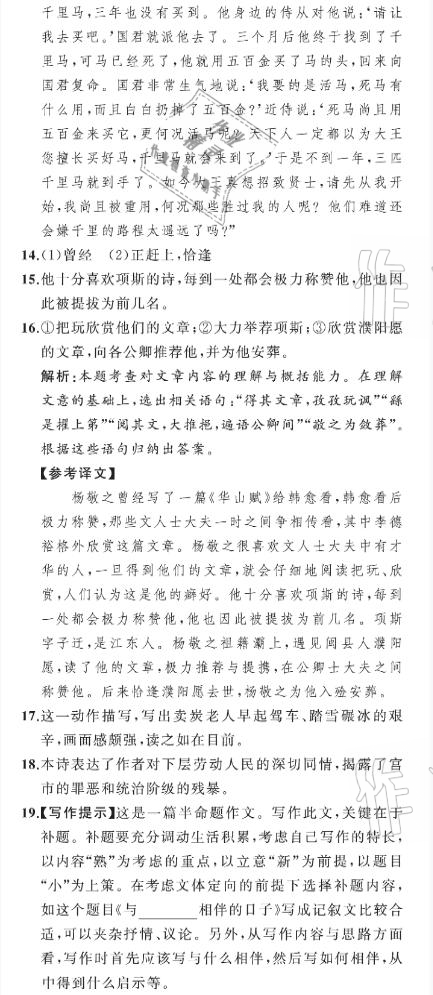 注:目前有些书本章节名称可能整理的还不是很完善,但都是按照顺序排列的,请同学们按照顺序仔细查找。练习册 2021年阳光课堂质监天津单元检测卷八年级语文下册人教版 答案主要是用来给同学们做完题方便对答案用的,请勿直接抄袭。