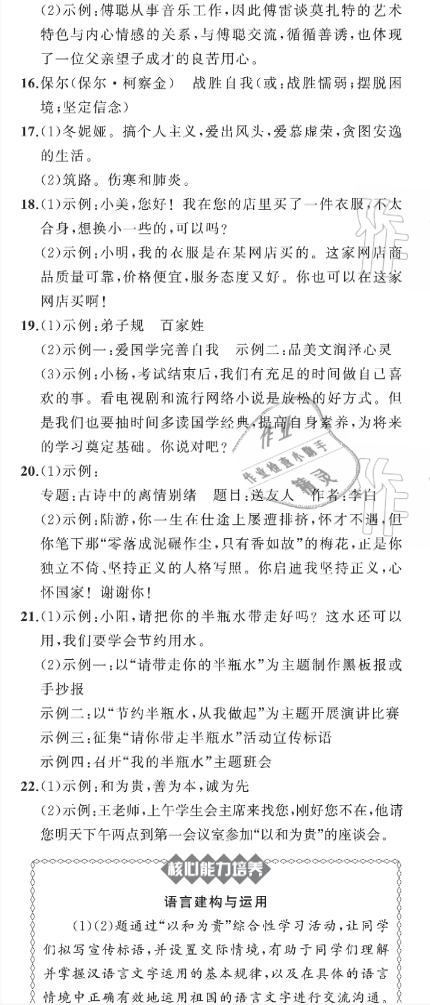 注:目前有些书本章节名称可能整理的还不是很完善,但都是按照顺序排列的,请同学们按照顺序仔细查找。练习册 2021年阳光课堂质监天津单元检测卷八年级语文下册人教版 答案主要是用来给同学们做完题方便对答案用的,请勿直接抄袭。