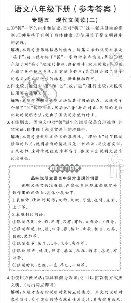 注:目前有些书本章节名称可能整理的还不是很完善,但都是按照顺序排列的,请同学们按照顺序仔细查找。练习册 2021年阳光课堂质监天津单元检测卷八年级语文下册人教版 答案主要是用来给同学们做完题方便对答案用的,请勿直接抄袭。