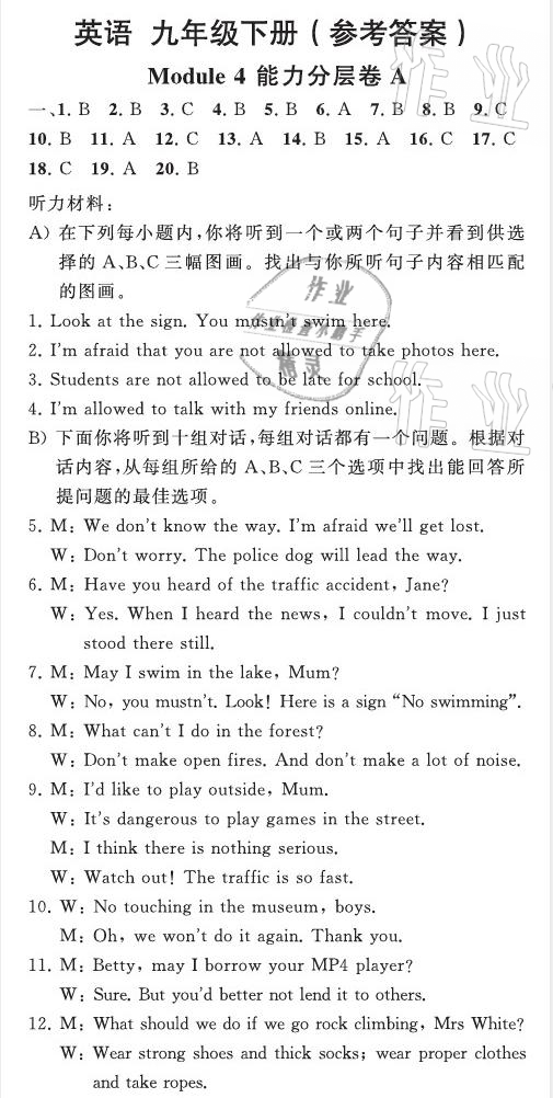 注:目前有些书本章节名称可能整理的还不是很完善,但都是按照顺序排列的,请同学们按照顺序仔细查找。练习册 2021年英语教材补充与练习质监天津单元检测卷九年级英语下册外研版 答案主要是用来给同学们做完题方便对答案用的,请勿直接抄袭。