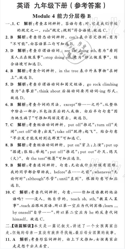 注:目前有些书本章节名称可能整理的还不是很完善,但都是按照顺序排列的,请同学们按照顺序仔细查找。练习册 2021年英语教材补充与练习质监天津单元检测卷九年级英语下册外研版 答案主要是用来给同学们做完题方便对答案用的,请勿直接抄袭。