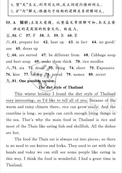 注:目前有些书本章节名称可能整理的还不是很完善,但都是按照顺序排列的,请同学们按照顺序仔细查找。练习册 2021年英语教材补充与练习质监天津单元检测卷九年级英语下册外研版 答案主要是用来给同学们做完题方便对答案用的,请勿直接抄袭。